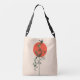 Um caule casal de bambu verde com folhas em pé contra um sol ascensão vermelho, sobre um pergaminho pálido e bronzeado faz um belo saco de corpos cruzados com tema asiático.