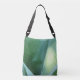 O desenho abstrato deste corpo cruzado Tote Bag, em tons naturais de verde, é uma fotografia original em close por ZoeSPEAK das folhas de uma bananeira. O sol da manhã ilumina a parte de baixo verde-clara de uma folha de banana, e destaca as costelas na face verde-escura de outra, enquanto ela se curva para as sombras.