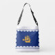 Crossbody Bag com pavilhão da cidade de Quebec, capital do Quebec, Canadá. Uma bandeira azul com contorno branco e um navio amarelo no centro