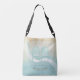 Este design de saco de tote clássico nas cores suaves do mar e da areia permite adicionar facilmente o seu próprio nome e texto utilizando o modelo fornecido. A imagem de duas cadeiras de Adirondack sobre um fundo angustiado e aquoso é destacada por um sotaque de onda em aqua e branco. Procure ID623 para ver a coordenação de elementos à beira-mar e produtos adicionais com este design.