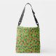 Traga a natureza colorida, insetos e botânicos com você todos os dias com esta adorável e colorida bolsa de tote de corpo! Este padrão é o cheio de borboletas laranja e amarelas e joias vermelhas e pretas sobre um fundo de folha verde.