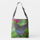 Esta bolsa de transporte apresenta borboletas descansando em zínias. Imagem diferente em cada lado. Ótima opção para presentes de aniversário ou para damas de honra.