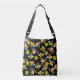 ForestBabies adoráveis sacos florais de corpo cruzado padronizados com um belo e branco abelhão voador de insetos gráficos de desenho animado, flores de margarida amarelas e colmeias de mel. Esta bolsa irradia uma sensação de magia da vida selvagem da natureza e charme lúdico. 🐝
