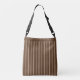Moderno elegante castanho e bege com barra vertical listrada em Crossbody Bag.