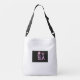 Caveira e Ossos Roxos Únicos em Fundo Preto em um Saco Branco de Corpo Cruzado com Alça Esturdy Preta