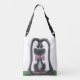 Esta adorável bolsa de corpo cruzado mostra Jack, o coelho amável da cinza vestido com sua gravata de arco rosa favorita. Personalize este saco de cruzamentos de bunny adicionando ou excluindo o texto para deixá-lo vazio. É baseado em uma peça de arte original por © One Artsy Momma.