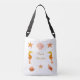Conchas marítimas, estrelas, caligrafia e cavalos marinhos em saco branco de Crossbody.