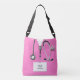 Saco de enfermeira criativa com design médico com esfregões rosa criativos para a sua enfermeira, médico ou assistente médico favorito. Editar texto para adicionar nome.