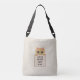 Linda bolsa bege com um gato fofo em um bolso e uma mensagem: A VIDA É MELHOR COM UM GATO. O texto pode ser personalizado!