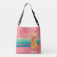Bolsa Ajustável Golden Retriever Custom Name Retro Stripe Pink