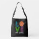 Saco para o transporte de cadáveres legal ou sacola da cruz do basquetebol com a frase "AMOR o jogo." O "o" é substituído por um basquetebol.