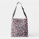Saco de corpo cruzado com uma impressão de leopardo preto-rosa-tenra num pano de fundo rosa-rosado.