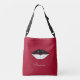 Lábios brancos e pretos, caligrafia em Burgundy Crossbody Bag.