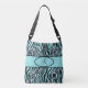 Bolsa transversal feminina de listras de zebra turquesa, verde aquático e preto monogramada personalizada. Personalize este produto com sua inicial
