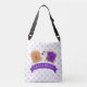 A Manteiga de amendoim e a Saco de Tota de Geleia, projetada pela Enchantfancy Design Company, apresenta duas fatias de pão, uma manchada com manteiga de amendoim e outra manchada com geleia de uva roxa, revestida com rostos sorridentes e acentuada por corações e bolinhas.