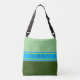 Adicione um toque de elegância e capricho aos seus acessórios com esta única bolsa de corpo cruzado. Na frente, um charmoso verde-escuro e verde-sábio de fundo grande faixa encontra uma faixa azul azul azul de turquesa com uma pequena amarela para seu nome de família ou monograma. Sacudir-o para encontrar o mesmo verde-escuro luxuoso e faixas verdes de sábio com múltiplas listras amarelas pequenas. São dois estilos em um — uma mistura deliciosa de sofisticação e arte, tudo em uma bolsa de corpo cruzado de solteiro. Hobinishop