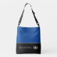 Este saco de tote de corpo cruzado de na moda de tamanho médio bonito é mostrado em um estilo clássico de bloco de cor azul e preto com uma coroa de paginação e texto personalizado. Banda destacada de impressão de brilho falso. Personalize este item e altere o texto para o seu.