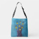 Monstro estranho por todo o lado na mala a tiracolo impressa com uma ilustração digital de uma criatura engraçada da árvore com os sete olhos amarelos de incandescência sobre o fundo do azul do petróleo. Divertimento e saco legal que é direito para você se você gosta de caráteres engraçados assustadores e de criaturas.