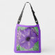 Impressão de uma glória matinal, baseada em uma fotografia, transformada digitalmente e pintada à mão - tons de violeta com um saco de impressão de fundo de cor verde