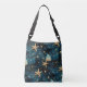 Um saco de corpo cruzado com um padrão azul elegante com estrelas-do-mar, representando o oceano.