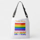 Orgulho gay Rainbow Flag com as palavras ORGULHO GAY abaixo em letras arco-íris. Acima é um lugar para um nome em texto laranja para criar uma aparência personalizada. Ou, adicione o nome de outra pessoa para um presente especial. Excelente para um presente para viajantes, assim como celebração da cultura LGBTQ. Design mostra na frente e atrás da bolsa de corpo cruzado.