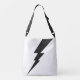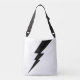 Bag de corpo cruzado de raio preto Flash. Logotipo preto simples de tranca em fundo branco.