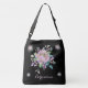 Esta Elegante Pastel Floral Watercolor Personaliza Black Cross Body Bag faz uma declaração excelente de como se sente - bela. Comprar para você ou dê como presente para seus amigos ou madrinhas no casamento. Personalize com seu nome.