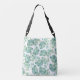 Tropical em toda a bolsa de tote de impressão para mulheres e raparigas apresenta as minhas folhas originais de monstera de água em tons de turquesa, azul e verde com a sua personalização ou monograma inicial numa letra moderna. Presente perfeito para a festa de noiva do casamento. Para mais informações, visite www.zazzle.com/dotellabelle.