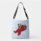 Body Bag com design com ilustração de um pinguim que voa num plano vermelho; ilustrada por Radka Kavalcova/MaxiHarmony