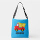 Os sacos para o transporte de cadáveres feitos sob encomenda da cruz do camião basculante do brinquedo para a escola caçoam. Design de veículo vermelho da construção do dumptruck.