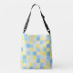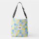 Um saco para o transporte de cadáveres transversal com um monograma em um teste padrão azul e amarelo dos quadrados. Personalize o saco com suas inicial ou iniciais entre outras opções.