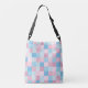 Um saco para o transporte de cadáveres transversal com um monograma em um teste padrão cor-de-rosa e azul dos quadrados. Personalize o saco com suas inicial ou iniciais entre outras opções.