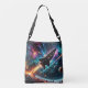 Uma nave estelar sai de uma espaçonave na superfície do planeta, indo para as estrelas nessa bolsa de corpo cruzado dramática e colorida. Perfeito para quem ama espaço exterior, exploração espacial e ficção científica.