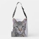 Este saco mostra uma imagem de um adorável gatinho marrom de mesa chamado Griffon.