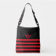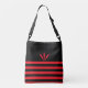 Lindas riscas negras e vermelhas modernas e penas cardinais Crossbody Bag. Malas de Tote Negra e Vermelha modernas.