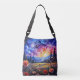 Esta bolsa única de corpo cruzado apresenta uma abstrato ilustração de lindos horizonte noturno. Esta bolsa faria uma ideia de presente de excelente para amigos e familiares.