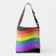 Mostre seu orgulho e solidariedade para com a comunidade LGBTQ com este saco do orgulho arco-íris. O design apresenta uma onda de cores arco-íris e tem as palavras "LGBRQ PRIDE" no canto inferior direito.