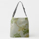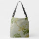 Grande saco de corpo cruzado de poliéster, em impressão, escovado, com uma imagem de esquisteria branca perfumada pendurada em vinhas verdes.