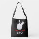 Uma silhueta branca de um zumbi horrível, texto vermelho Trate-me, texto branco Bro, fundo preto. Engraçado saco de tote de corpo cruzado do Halloween para qualquer um. Personalizável. Você pode mudar a imagem e dois textos. Use o botão Personalizar para ajustar o produto às suas necessidades e desejos pessoais. Divirta-se.