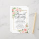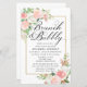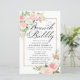 As rosas cor-de-rosa e as flores brancas brilhantes da hydrangea estão aninhadas em folhas verdes e macios para criar arranjos florais elegantes que decoram uma espumante armação de ouro que rodeia seus detalhes Bridal Brunch e Bubble. Este item é parte da Coleção de Chás de panela Blush Pink e White Floral.