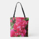 A intensa cascata rosa de cores nesta Tote Bag é uma fotografia original de ZoeSPEAK. A foto aproxima-se de um arbusto de bougainvillea, em flor de cheio, mostrando as minúsculas flores brancas cercadas pelas profundas brácteas cor-de-rosa que se parecem com folhas, uma assinatura desta bela planta. As folhas verdes do arbusto formam o fundo. Esta planta adora um clima quente.
