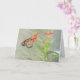 Uma borboleta cor de laranja e preta monarca gira néctar de uma alga tropical enquanto se encontra perto, uma lagarta come as folhas da sua planta hospedeira preferida. Perfeito para muitas ocasiões, você pode personalizar este cartão com sua própria mensagem.