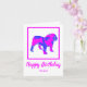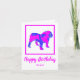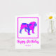 Silhueta de Bulldog Inglês em um padrão de abstrato moderno rosa quente e azul brilhante. Um dentro de mensagem de aniversário engraçado pode ser mudado para qualquer coisa que você quiser. Personalize com o nome abaixo do sentimento de Feliz Aniversário.