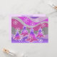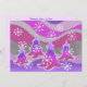 Uma paisagem de inverno moderna e estilizada com pinheiros foscos e flocos de neve espumantes. Convite com um design personalizável roxo, rosa, prata, cinza e branco para personalizar com seu próprio texto, imagens e ideias. O texto pode ser facilmente alterado usando o modelo fornecido ou clique no botão 'Personalizar o texto' para fazer outras alterações. Um lápis colorido digitalmente melhorado por Jess Perry.
