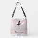 bolsa de "Nascer para dança" com o nome do Studio e o nome dela, design tem uma bela silhueta de dançarina e um impressionante fundo cintilante.