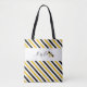 As faixas diagonais são uma das doze designs na minha coleção de sacos de tote "Busy Bee". Este design apresenta faixas diagonais amarelas, brancas e pretas, em ambos os lados, deste saco multiImpressão. Cada design tem uma banda branca, com texto que diz, "Abelha Ocupada" e arte de abelhas. Você pode personalizar o texto. Estas bolsas são excelentes para tarefas, compras, viagem e fazem presentes de excelente