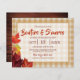 Fogueira divertida e mais convite de festas em uma xadrez e design de madeira com folhas do outono.