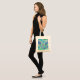 Uma paisagem de inverno moderna e estilizada com pinheiros foscos e flocos de neve espumantes. Saco com uma cinza verde, azul, prata e design branco personalizável para você personalizar com seu próprio texto, imagens e ideias. Um lápis colorido digitalmente melhorado por Jess Perry.
