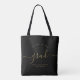 Formatação: simples saco de tote preto e dourado esfarrapado no estilo da tipografia moderna, chic e elegante. Personalize com o nome do formando, o ano de graduação e o nome da escola.