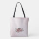 Saco de tote único, bonito, com flores rosas e folhas verdes. PARA MAIS PRODUTOS CORRESPONDENTES, clique na coleção acima ou entre em contato comigo.